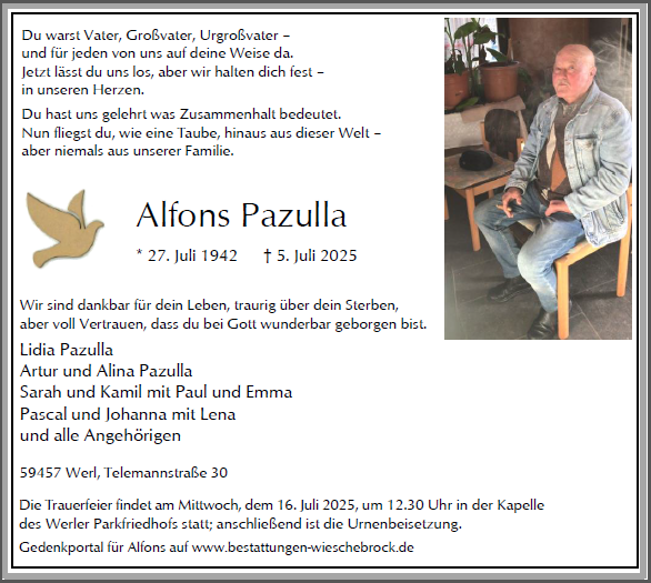Du warst Vater, Großvater, Urgroßvater – und für jeden von uns auf deine Weise da.