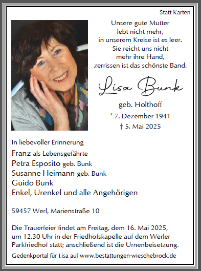 Sprechen Sie im Kondolenzbuch den Hinterbliebenen Ihr Beileid aus und teilen Sie persönliche Gedanken und Erinnerungen mit anderen.