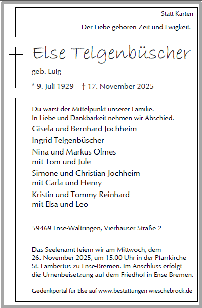 Seelenamt, Pfarrkirche St. Lambertus zu Ense-Bremen