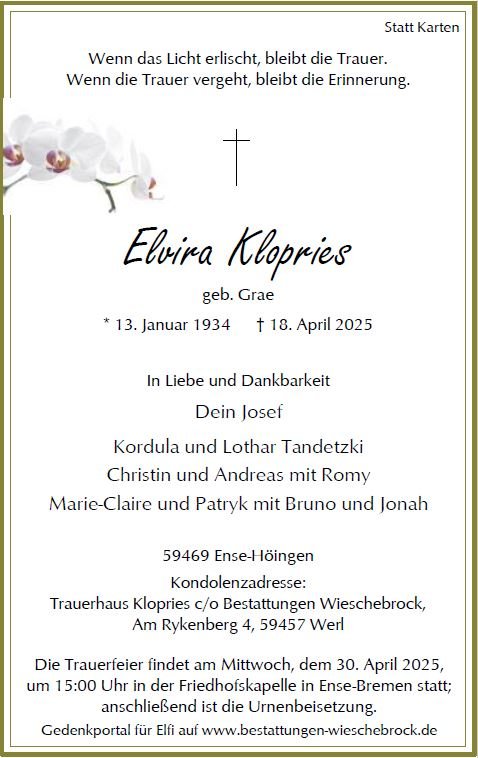 Wenn die Trauer vergeht, bleibt die Erinnerung.