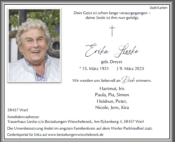 Die Urnenbeisetzung findet im engsten Familienkreis