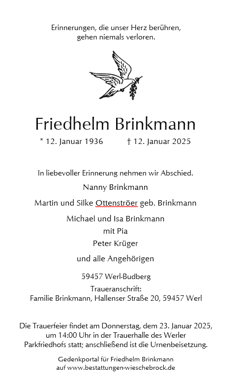 gestorben am 12. Januar 2025 in Werl