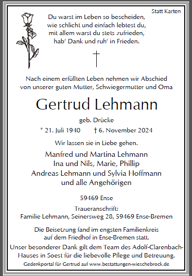 gestorben am 6. November 2024 in Soest
