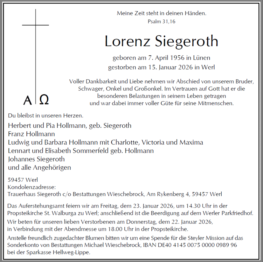 Lorenz Siegerothgestorben am 15. Januar 2026