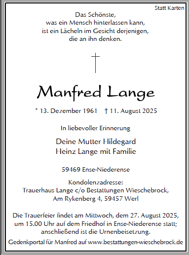 Sprechen Sie im Kondolenzbuch den Hinterbliebenen Ihr Beileid aus und teilen Sie persönliche Gedanken und Erinnerungen mit anderen.
