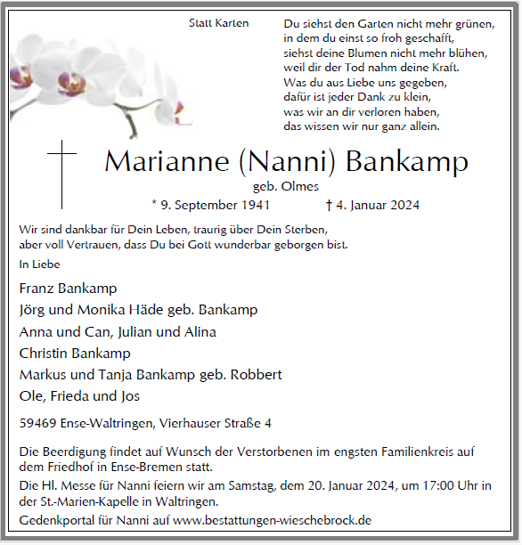 Zur FotobuchsoftwareMarianne (Nanni) Bankamp geb. Olmes