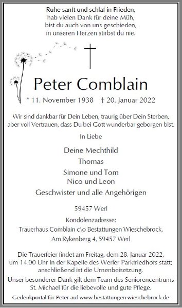 gestorben am 20. Januar 2022 in Werl