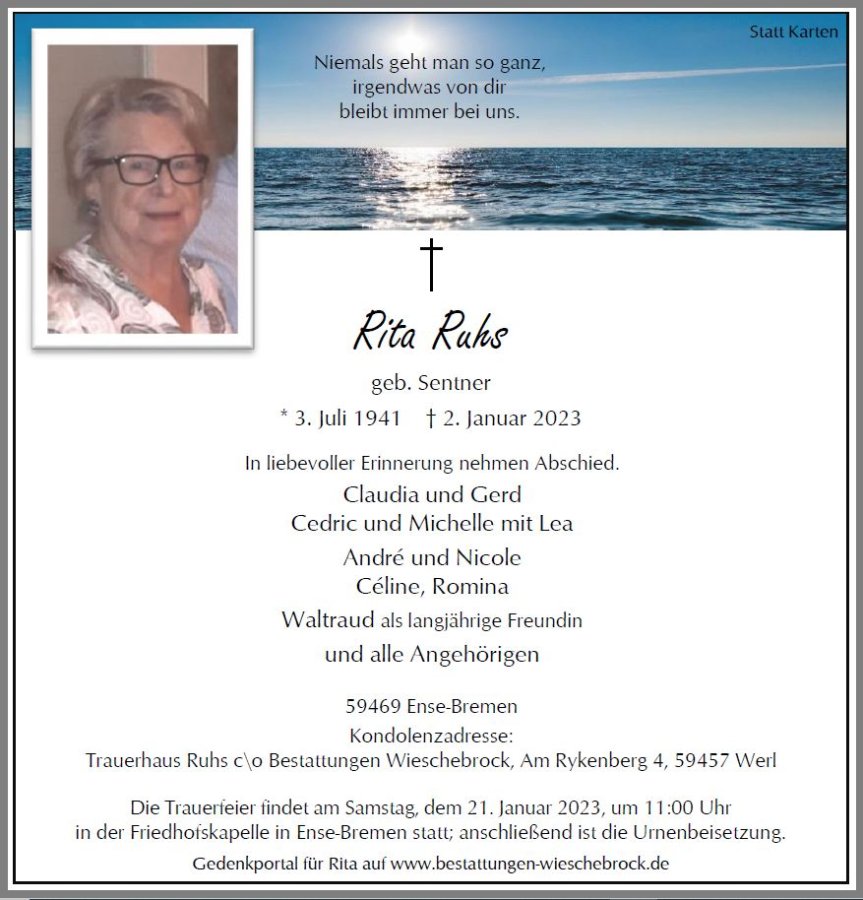 gestorben am 2. Januar 2023 in Arnsberg-Hüsten