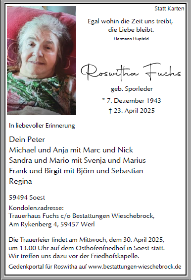 Zur FotobuchsoftwareRoswitha Fuchs geb. Sporleder