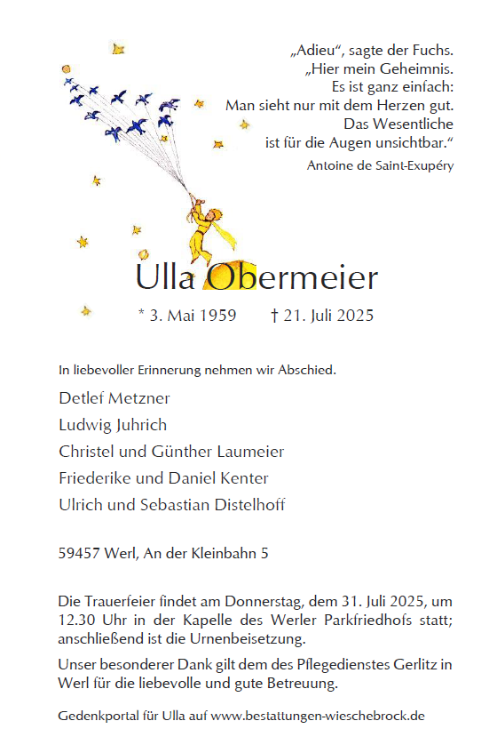 Ulla Obermeiergestorben am 21. Juli 2025